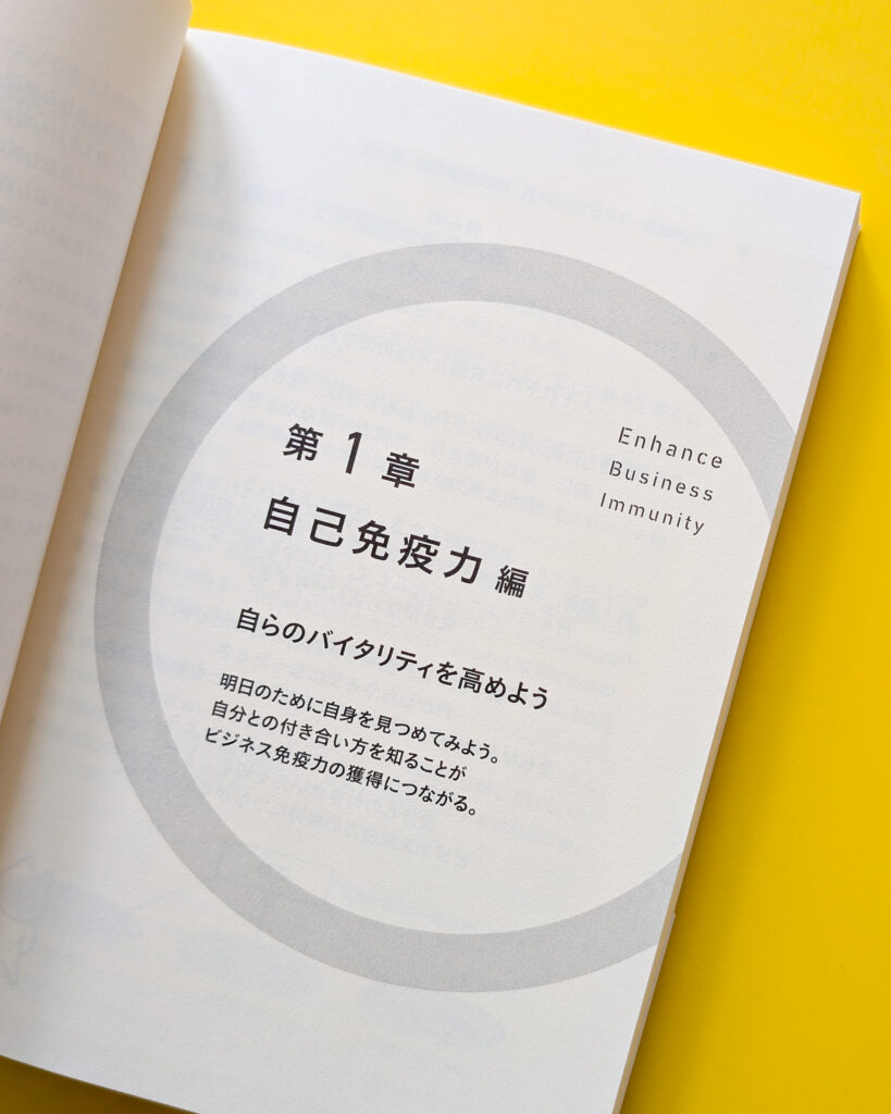 激変する時代に迷いや行き詰まりを感じるビジネスパーソンに向けて、自己・組織・市場・会社・社会の5章を通じて“しなやかさと強さを併せ持つ思考=ビジネス免疫力”を身につけ、必要なときに興味のあるテーマだけ読んでも視点が整い、キャリアアップへとつながるようにまとめた一冊です。