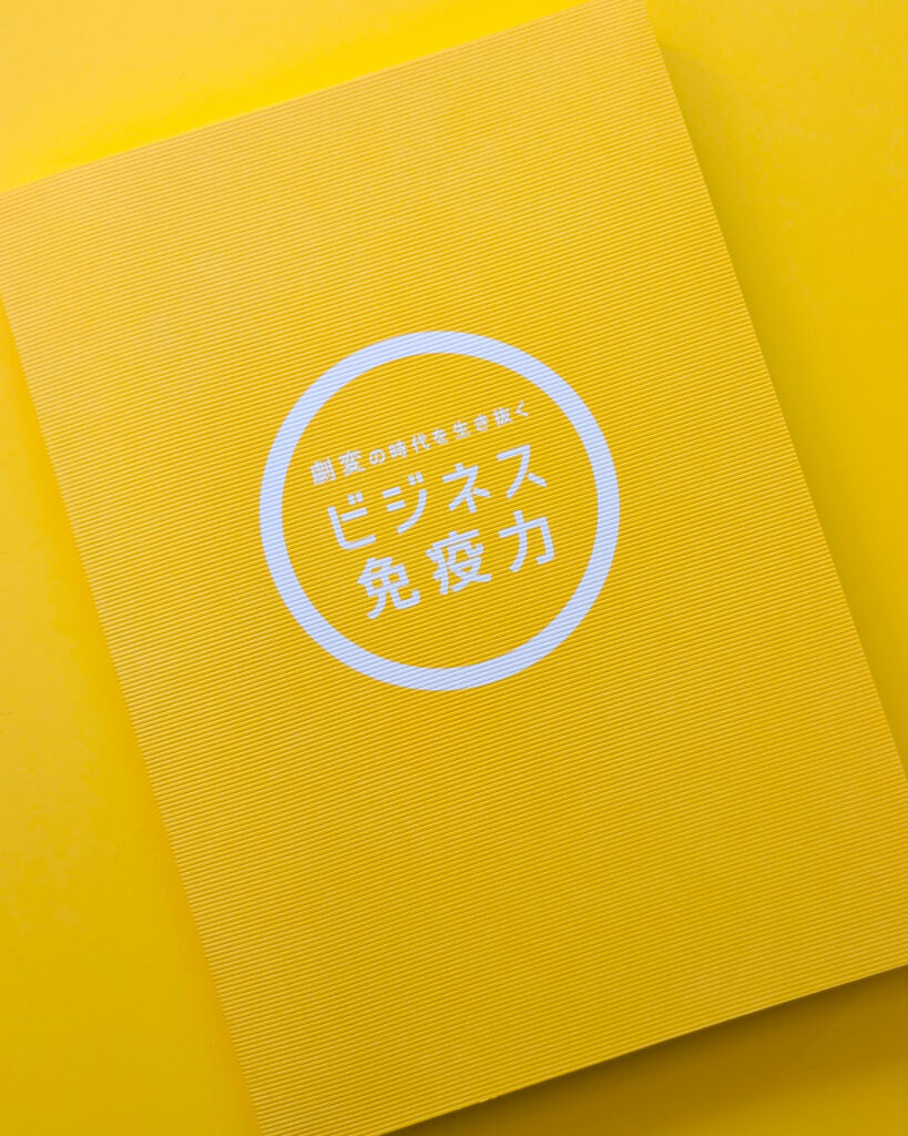 数あるビジネス書の中で確実に目を引くよう、著者提供の“ギコ猫風”キャラをヒントにイメージを広げつつ、余計な要素をそぎ落としたミニマルな構成の中へ、ビタミンカラーで象徴化した「免疫力=◎」を力強く配置したビジュアルに仕上げました。